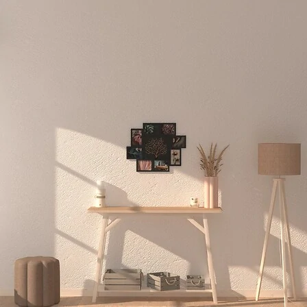 Dodejte svému domovu osobní kouzlo a eleganci s designovým fotorámečkem David od značky Atmosphera. Tento nástěnný rámeček v moderním černém provedení pojme až osm oblíbených fotografií, které spolu vytvoří působivou koláž plnou emocí, radosti a krásných vzpomínek.