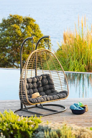 Luxusní závěsné houpací křeslo AJAR pro dvaDodání 4-6 týdnů z Francie, objednávky přes email15 999 Kč/ ks13 222 Kč bez DPH
